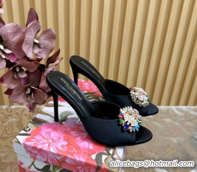 Lower Price Dolce & Gabbana Satin Heel Slides Sandal 10cm with Strass DG121104 Black 2026
