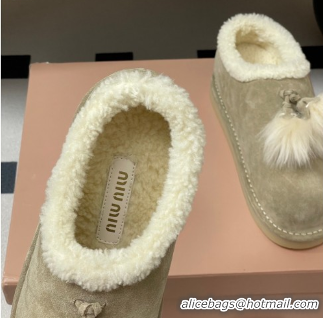 > Shoes Plaza > Miu Miu Shoes > Discount Miu Miu Suede and Shearling Snow Boots with Pompon Beige 1024137 2025