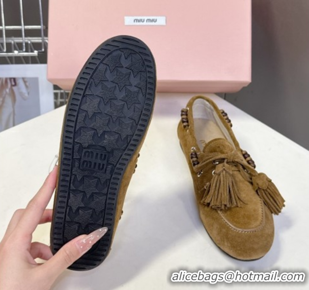 Your Position: Home > Shoes Plaza > Miu Miu Shoes > Lower Price Miu Miu Tassel and Beads Loafers in Suede Leather Olive Green 5D518E 1025010 2025