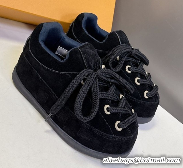 Sumptuous Louis Vuitton LV Yeti Lace Up Platform Shoe in Suede 1AIJDZ Black 1022062