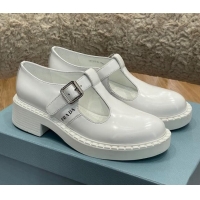 Hot Style Prada Brushed-Leather Mary Jane T-strap Shoes/Loafers White 032618