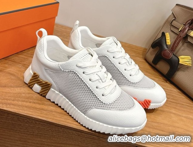 Best Price Hermes Bouncing Sneakers in Graphic Mesh and White Grained Calfskin Leather Grey 2026 0304127