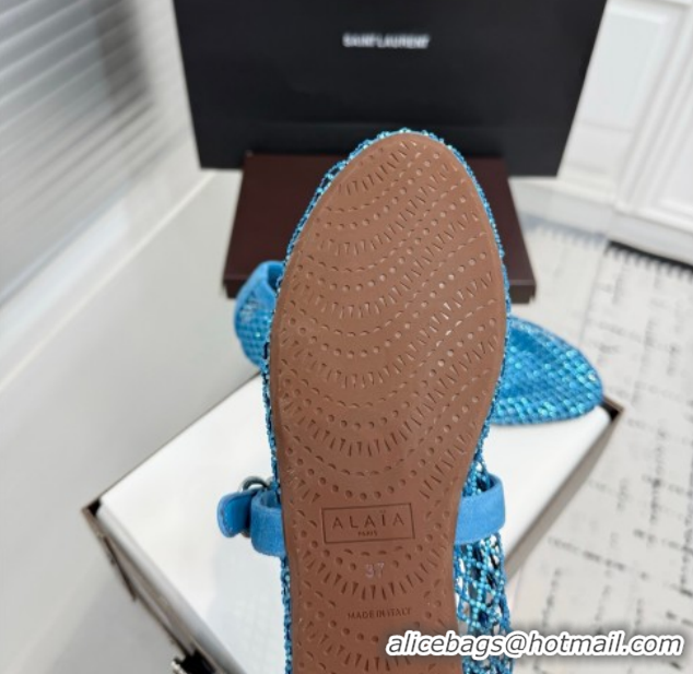 Most Popular Alaia Ballet Flats in Fishnet and Suede with Strass Sky Blue AL020702