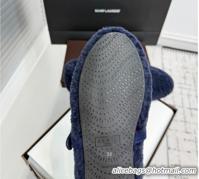 Luxurious Alaia Ballet Flats in Shearling Wool Dark Blue 2026 AL120901 1209008