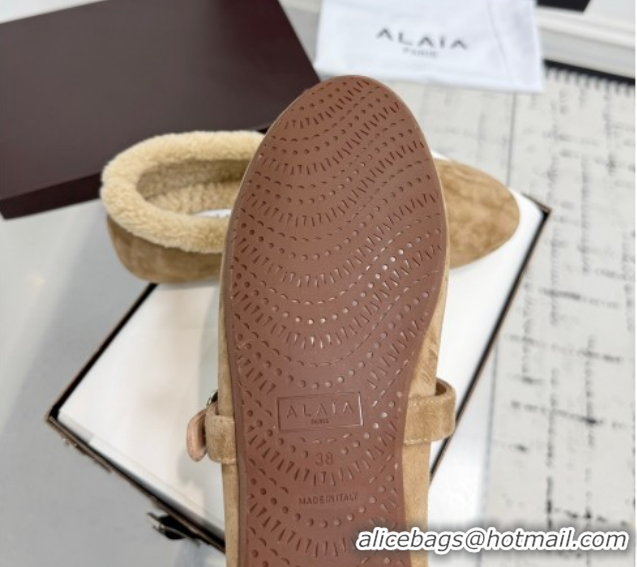 Luxurious Alaia Ballet Flats in Suede and Shearling 2026 AL102901 Camel