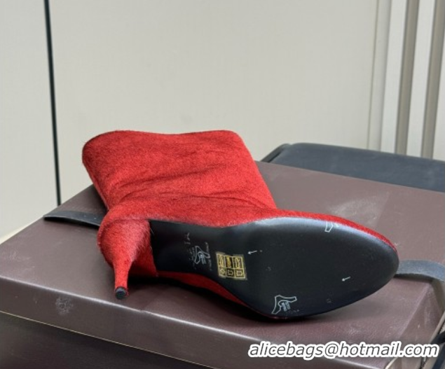 Perfect Alaia Heel Short Boots 9cm in Mohair Red 0709033