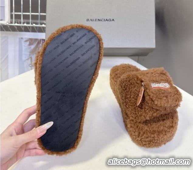 Grade Quality Balenciaga Shearling-Like Platform Slides Sandal Brown 0827014