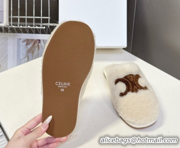 Grade Quality Celine Georgia Flat Slides Sandal in Shearling White 1024070