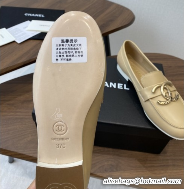 Luxurious Chanel Calfskin Loafers with CC Logo CH9329 Beige