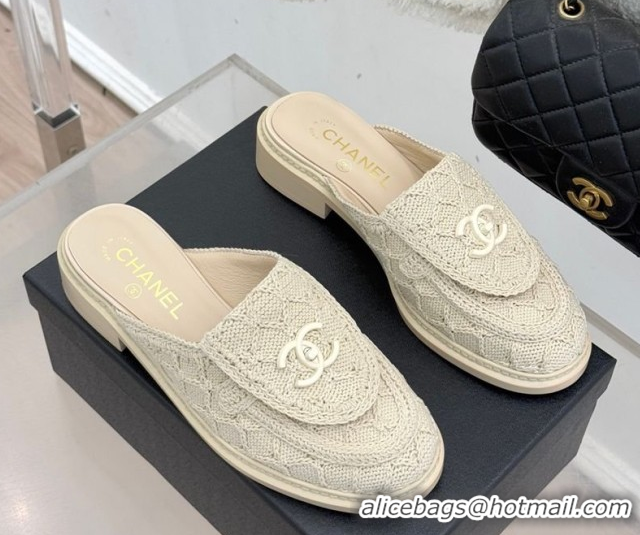 Top Design Chanel Knit Flat Mules with CC Foldover G45474 Beige 2026