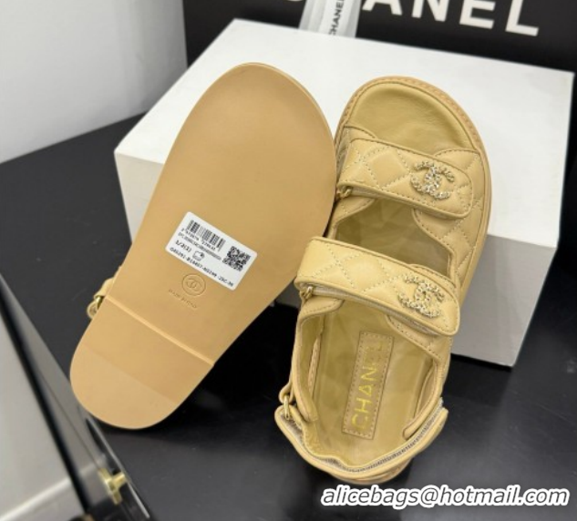 Luxurious Chanel Lambskin Leather Strap Flat Slides Sandal with Chain CC CH030614 Beige 2026