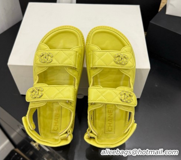 Cheap Price Chanel Lambskin Leather Strap Flat Slides Sandal with Chain CC CH030614 Yellow 2026