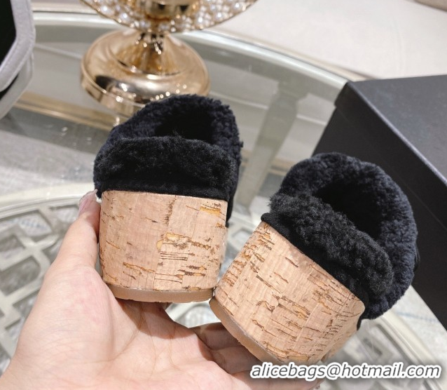 Unique Style Chanel Quilted Suede and Wool Platform Mules with Strap Black 2025 CH110407 1104076