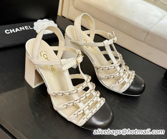 Good Looking Chanel Calfskin Leather & Chain Heel Sandals 8cm G46956 White 2026