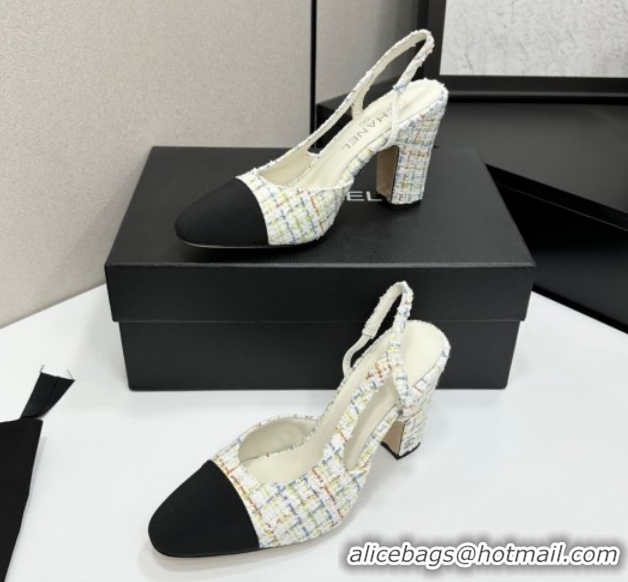 Luxurious Chanel Tweed & Grosgrain Slingback Pumps 9cm G45509 White/Multicolor 2026