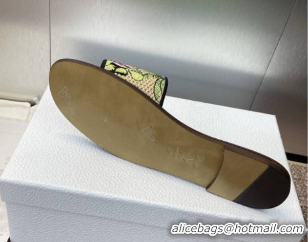 Classic Hot Dior Dway Flat Slides Sandal in Straw and Embroidered Cotton Green/Blue DR082204 50822086