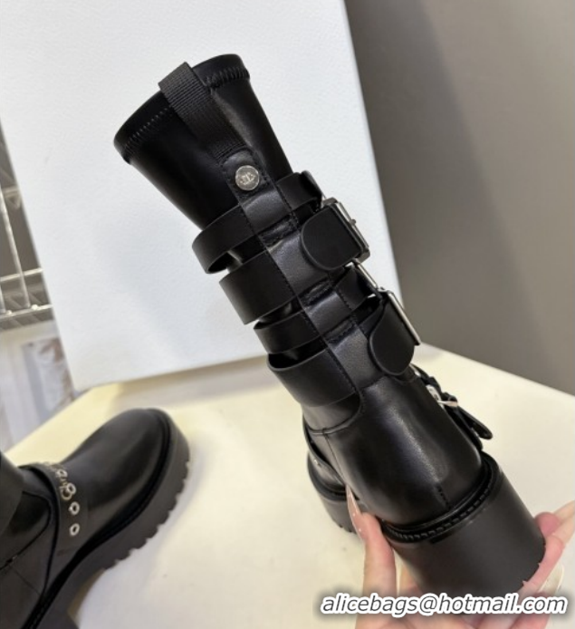> Shoes Plaza > Chrisitan Dior Shoes > Stylish Dior D-Fight Ankle Boots in Calfskin and Leather-Effect Stretch Material with Buckle Black 1029046