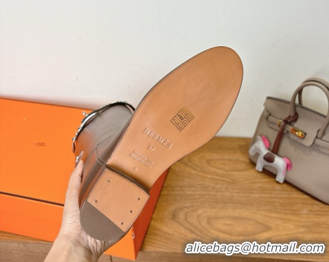> Shoes Plaza > Hermes Shoes > Luxurious Hermes Jumping High Flat Boots in Calfskin Leather with Studded Kelly Buckle Strap Dark Brown 1023068
