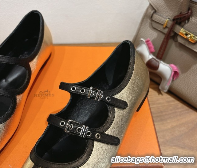 Luxurious Hermes Lilia Ballet Flats in Calfskin with H Buckle Gold 0820124