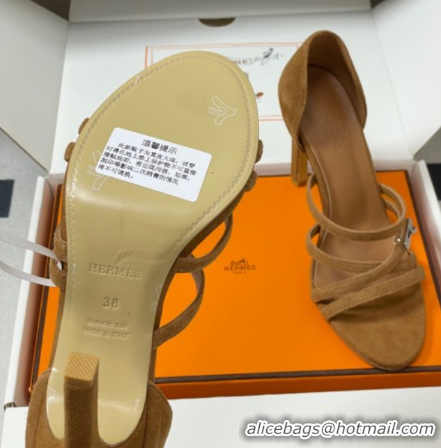 Luxurious Hermes Lipstick Heel Sandals 10.5cm with Kelly Buckle in Suede Brown 1023177