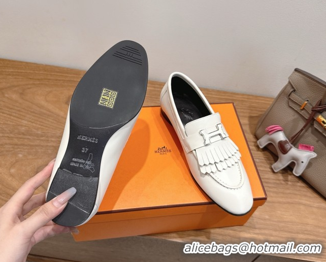 Luxurious Hermes Royal Loafers in Calfskin Leather with Fringe White2 2025 H082006 0820058