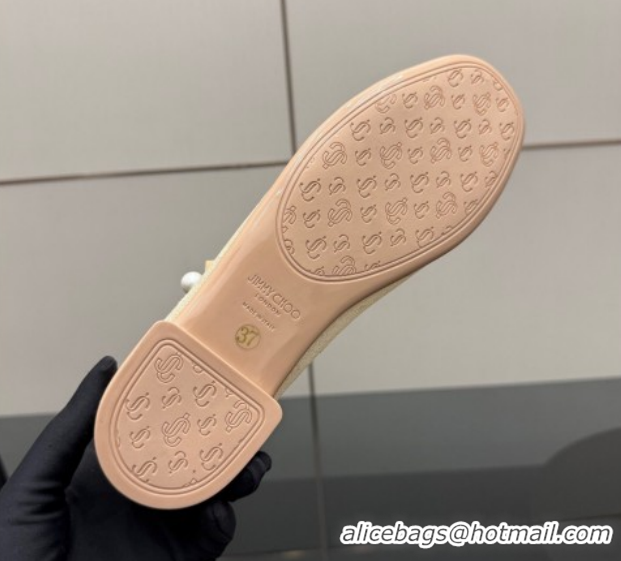 Perfect Jimmy Choo Mesh and Leather Mary Janes Ballerinas Flat with Pearl Bow Beige JC121001 1210124