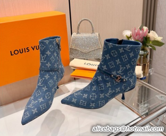 Most Popular Louis Vuitton 6AM Heel Ankle Boots 5.5cm in Monogram Denim with Back Strap Blue 1AIUOR 1021153