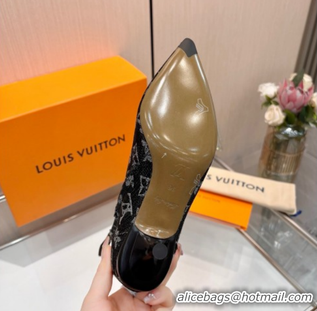 Luxurious Louis Vuitton 6AM Heel Ankle Boots 5.5cm in Monogram Denim with Back Strap Black 1AIUOR 1021156