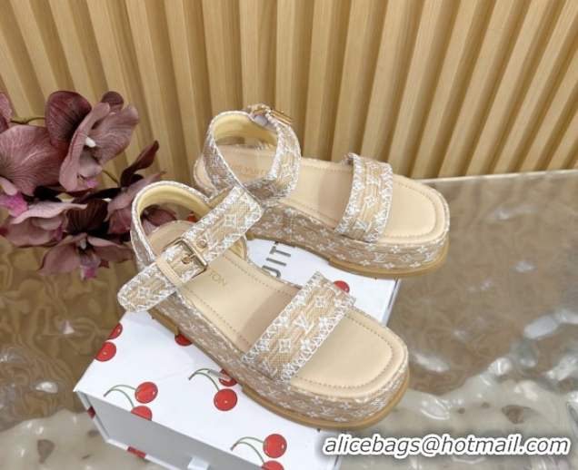 Best Grade Louis Vuitton Maya Platform Sandals 7cm in Monogram Raffia Straw Beige 1AHNOK 0829129