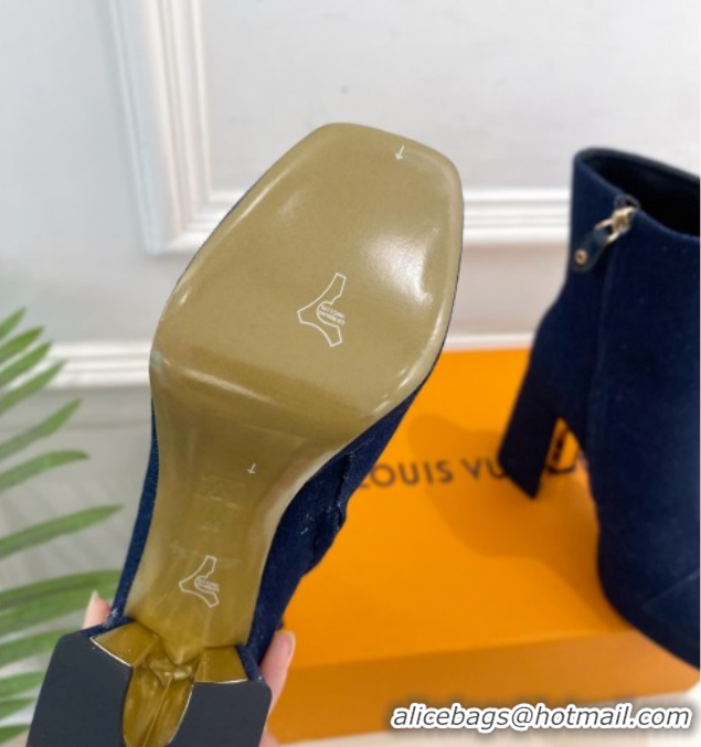Low Price Louis Vuitton Swing Heel Platform Ankle Boots 11cm in Navy Blue Denim 1AID09 1021122