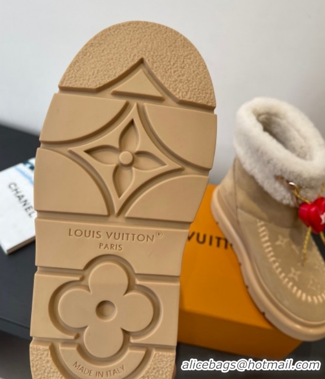 Luxury Discount Louis Vuitton Cortina Platform Ankle Boots in Suede and Wool Beige 1AIUEY 1219065