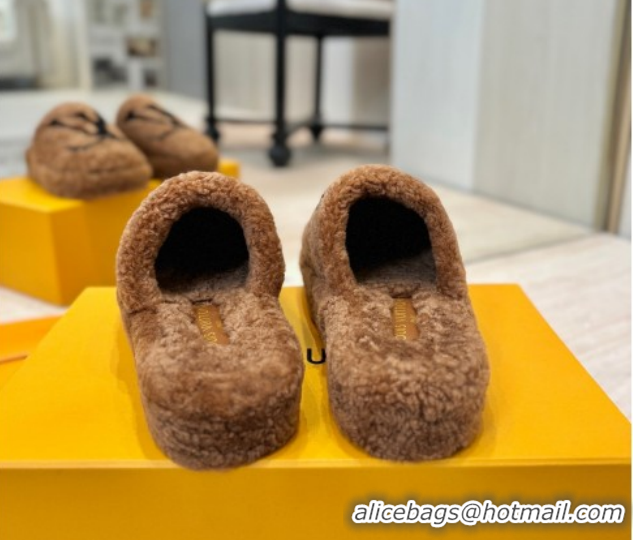 Shop Duplicate Louis Vuitton Wool Platform Slides Sandal 2cm Brown LV102206 1022127