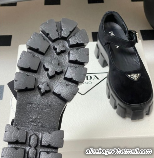 Good Looking Prada Suede Monolith Platform Mary Janes Shoes 5cm Black 2025 1F080O 1027042