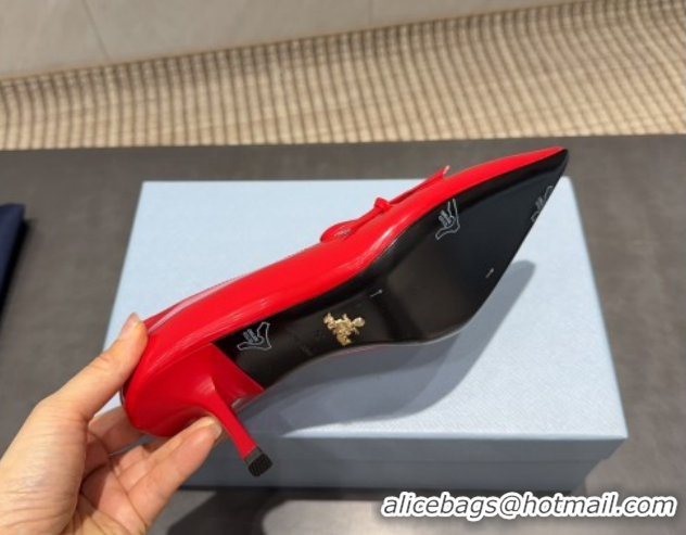 Luxurious Prada Patent Leather Heel Pumps 7.5cm with Bow Red PR120603 1206020 2026