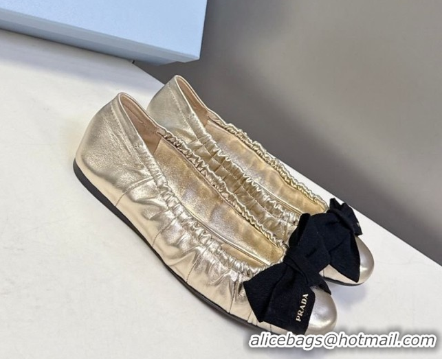 Stylish Prada Nappa leather ballerinas flat with bow Platinum 1F322O 0227112