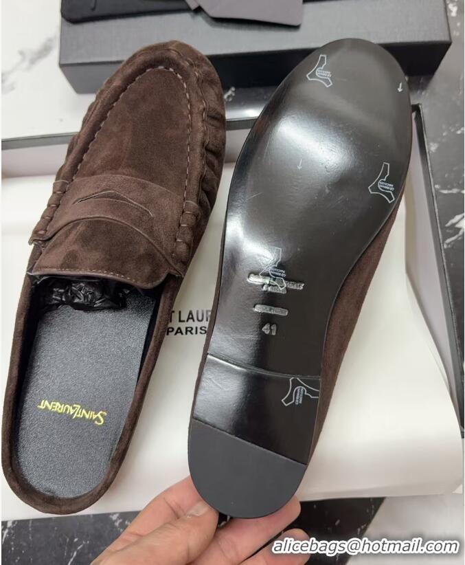 Best Product Saint Laurent Le Loafers Mules in Suede Dark Brown 0424035