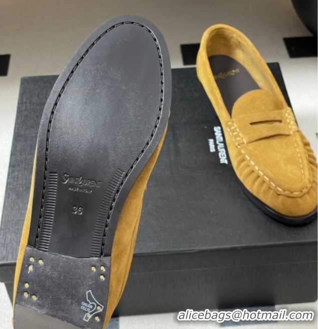 Luxurious Saint Laurent Le Loafers Penny Slippers in Suede Yellow 1215014