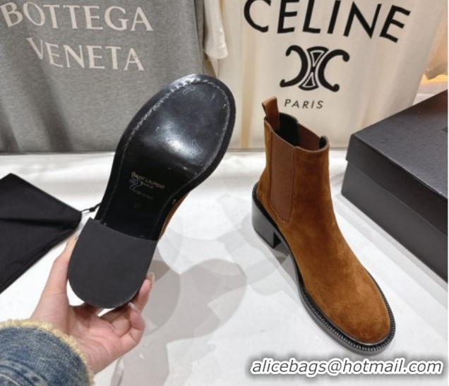 > Shoes Plaza > Yves Saint Laurent Shoes > Luxurious Saint Laurent Vincent Heel Chelsea Booties 6cm in Suede Light Brown 1213053