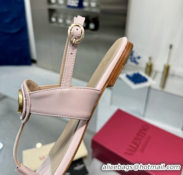 Luxurious Valentino Vlogo Signature Flat Thong Sandals in Calfskin Light Pink 0902052