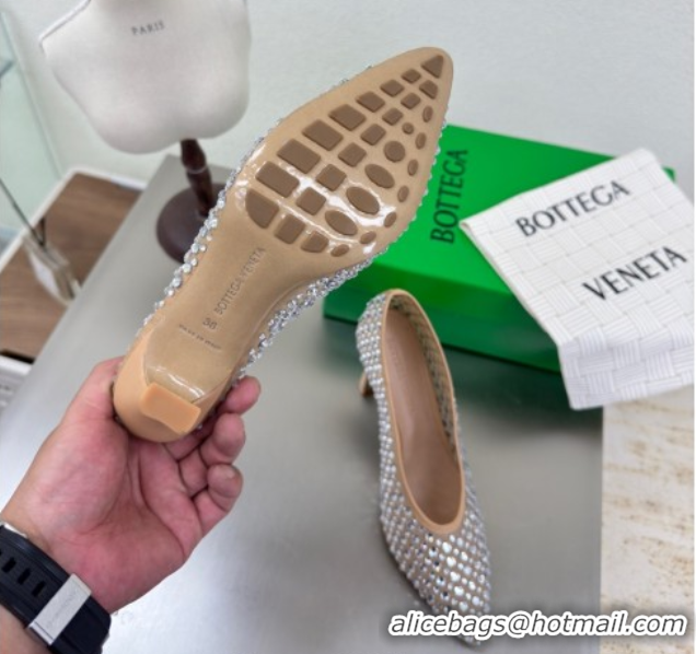 Luxury Bottega Veneta Sofia Heel Pumps 9cm in Mesh and Strass Beige 0823029