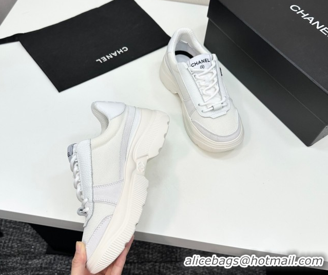 Good Product Chanel Calfskin Leather, Suede and Mesh Platform Sneakers White 21 2025 CH110102 1101021