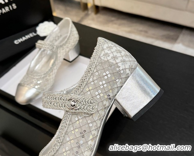 Luxury Chanel Mesh & Sequins Mary Janes Pumps CH122302 Silver 2026