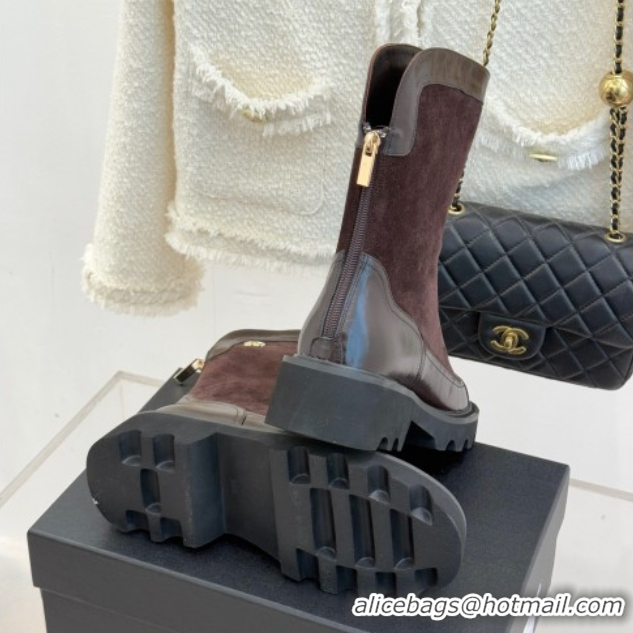 Luxury Chanel Suede and Patent Leather Platform Ankle Boots Brown 2025 CH11030319 1103136