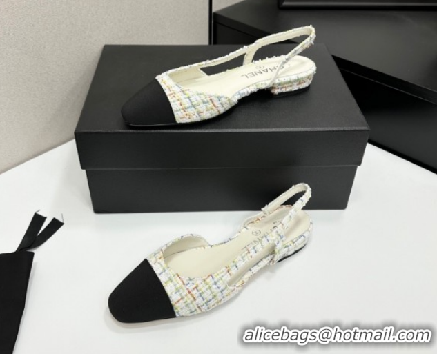 Luxury Chanel Tweed & Grosgrain Slingbacks Flat G31319 White/Multicolor 2026