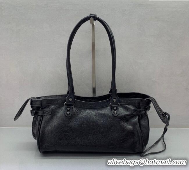 Luxury Cheap Balenciaga Le City Bag East West in Lambskin Leather 0926 Black 2025