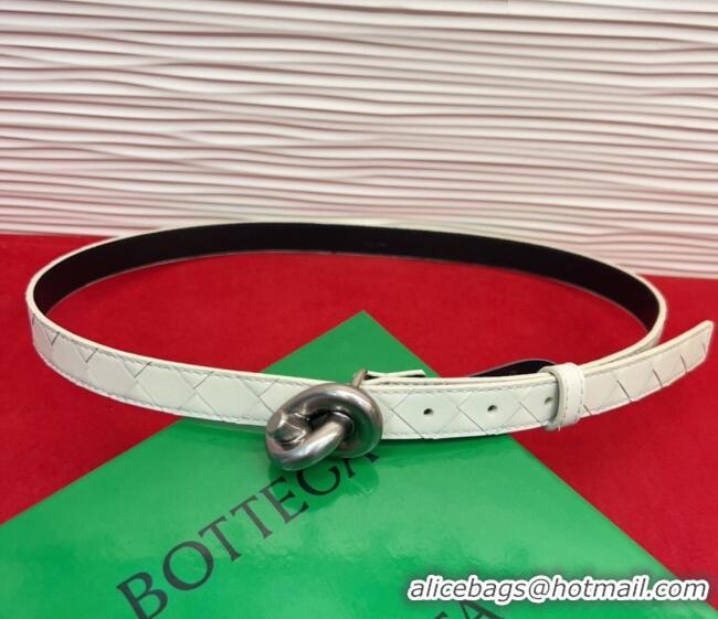 Luxury Cheap Bottega Veneta Intrecciato Leather Belt 2cm with Knot Buckle BV26010402 White/Silver 2025