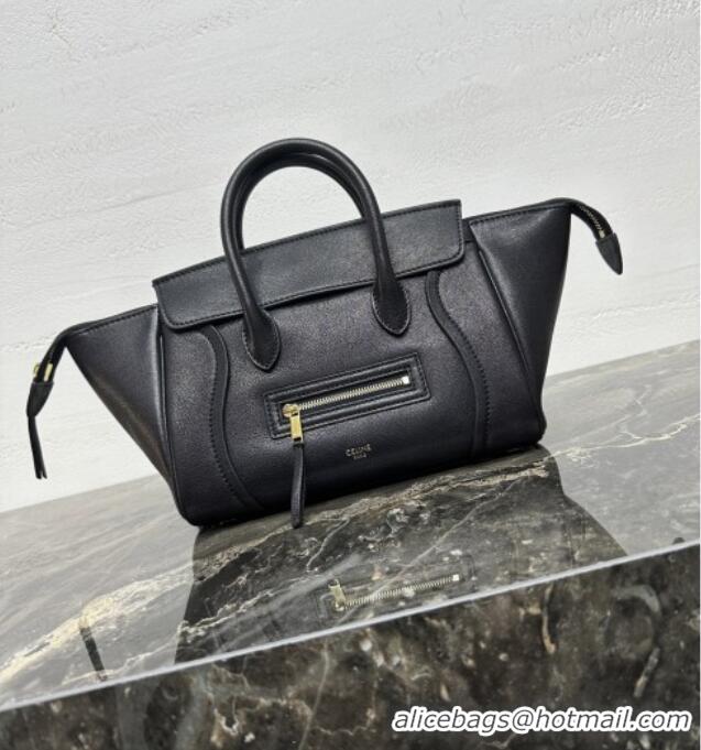 > Celine Handbags > Celine 2025 Bag > Luxury Cheap Celine Small New Luggage in Supple Shiny Lambskin 124213 Black 2025