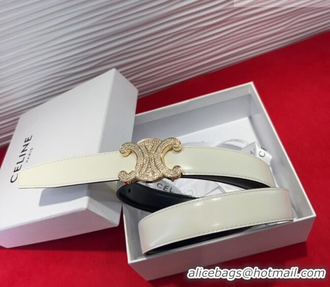 Luxury Cheap Celine Triomphe Calf Leather Belt 2.5cm with Strass Buckle CL2013025 White 2025