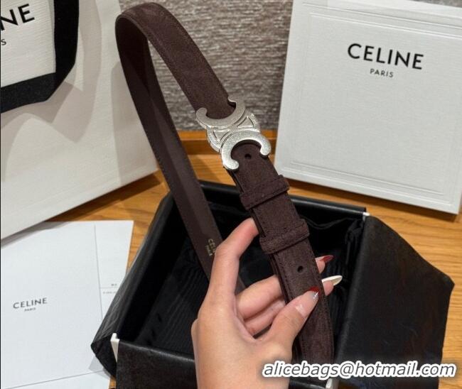 Luxury Cheap Celine Triomphe Medium Belt 2.5cm in Suede CE031603 Dark Brown/Silver 2026