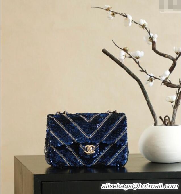 Luxury Cheap Chanel Chevron Sequins Flap Handbag CH100904 Blue 2025